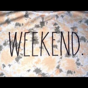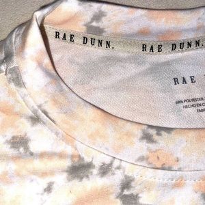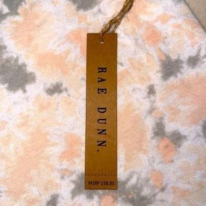 Brand new with tags Rae Dunn WEEKEND drop sleeve top with a pink and grey tie dye background