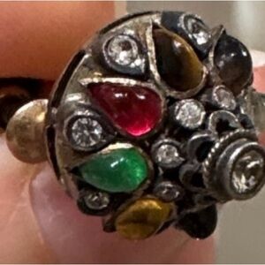 The name often comes from Thai princess / harem style rings and jewelry, which were handcrafted in Thailand and became popular from the 1940s–1960s when U.S. servicemen brought them home as gifts. These pieces are usually vintage costume or estate jewelry, often unmarked but made of solid gold (10K–14K) with natural gemstones. This set of earrings is marked 14K is a bit tarnished and needs to be gently cleaned.