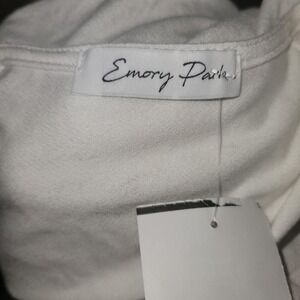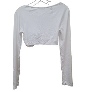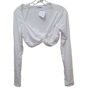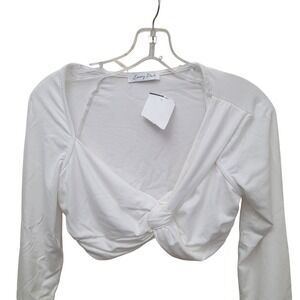 Emory Park Twist Top Size Large Ivory/White Long Sleeves Crop Bustier V Neck Pullover