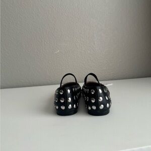 Chic black ballet flats with silver studs. Perfect for a stylish look.Greta is back. Our best-selling studded leather ballet flats have a perfectly squared-off toe, an elastic Mary Jane strap and dozens of five-star reviews. Plus, our MWL Cloudlift Lite padding makes it feel like you're walking on a...well, you know.Upper: 100% leather, with metal studs.Lining: 100% leather.Sole: 79% rubber (31% of which is recycled, 25% of which is synthetic, 23% of which