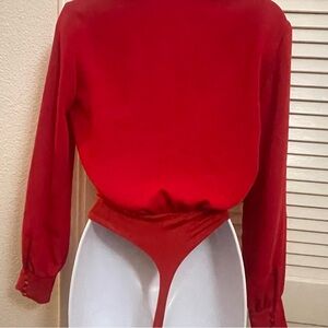 BABATON Aritzia Bodysuit XXS Red Long Sleeve Tie Front Ace Blazer Style Thong