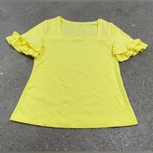 Womens size small, Calla Yellow, Lilly Pulitzer, Fitz top. Soft, comfy, stretchy material. Square neckline with tiered ruffle sleeves.