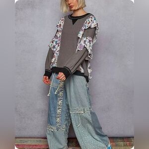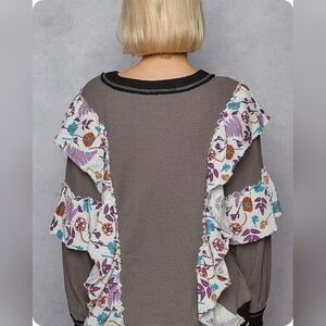 NEW!!! POL Floral Ruffle Gray Sweater, Sz Large, NWT