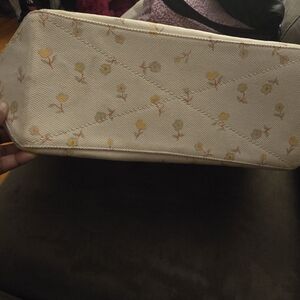 Stylish Coach tote bag featuring a vibrant rainbow handle design, pre-owned by me. This bag is in very good condition, but the outside is discolored on some parts. Please look at all the pictures for reference. Height: 12.5 inches Width: 18 inches (middle) Depth: Around 10 inches
