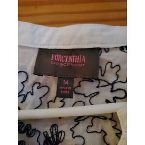 ForCynthia Womens Blouse Sz M Beachwear Black White Shirt 1/4 Button Down Tunic