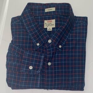 J. Crew Men's Oxford Red and Blue Plaid Shirt $128