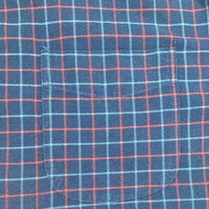 Casual button-down with a classic plaid pattern. Blue base with red lines. Perfect for everyday wear.