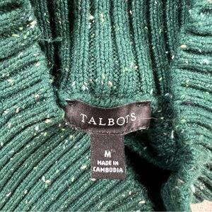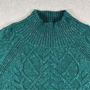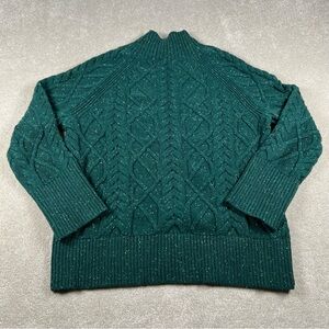 Talbots Sweater Cable Knit Mock Neck Green Speckled Cozy Casual Women's Medium