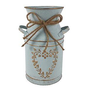 Vintage Galvanized Milk Can, Farmhouse Decorative Flower Vase, Rustic Shabby Chic Vase with Handle for Home Office Decor 7.5"