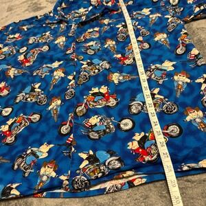 Keywords: Duffies shirt, Americana shirt, Motorcycle shirt, Cartoon pig shirt, Novelty print shirt, Button up shirt, Short sleeve shirt, Blue shirt, Men's XL shirt, Vintage shirt, Camp collar shirt, Unique shirt, Casual shirt, Americana clothing, Biker shirt