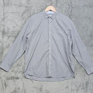 Johnston & Murphy Men's Flip Cuff Button Up Shirt XL Plaid Blue 100% Cotton