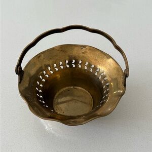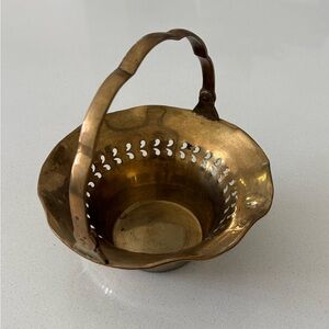 Vintage Small Brass Trinket Basket Folding Handle Scalloped Rim Made in India