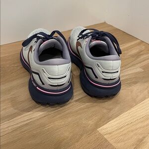 Brooks Ghost 15 women’s running shoes in size 8. A reliable neutral trainer known for lightweight cushioning, smooth transitions, and all-day comfort. These feature a breathable mesh upper with supportive structure, cushioned midsole, and durable rubber outsole designed for running, walking, or gym training.