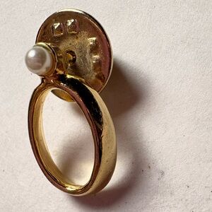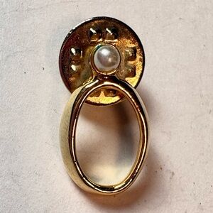 Vintage Gold tone Oval faux Pearl dainty pin Brooch