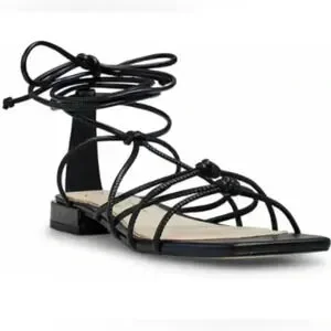Jessica Simpson Women's Chasca Black , 9.5 M US FLAT ANKLE WRAP SANDALS