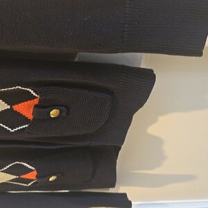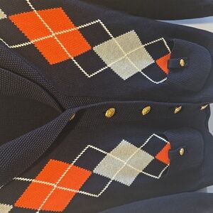 Classic navy knit sweater by Tommy Hilfiger. Features subtle texture and signature branding.