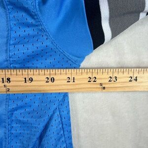 Blue NFL jersey with perforated design. On-field style with official branding.