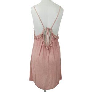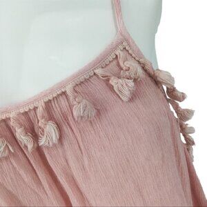 Francescas Swim Fringe Boho Coverup Size L Pink Tassle Sheer Tie Back Festival