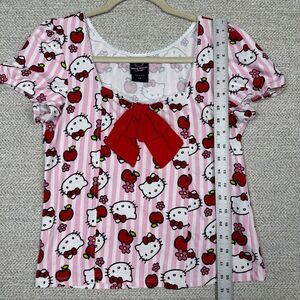 Hello Kitty Pink Striped Blouse Top Medium Apples Flowers Bow AOP