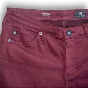 AG The Prima Mid Rise Cigarette Leg Burgundy Pants Size 28R