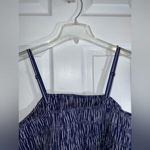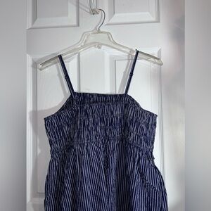 NWOT A NEW DAY Midi Dress Blue Cotton Spaghetti Strap Smocked Stripes