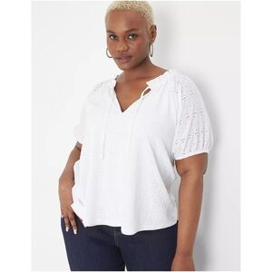 Swing Tie-Neck Eyelet Blouse White sz 26/28 Women's Shirt