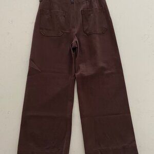 MAEVE The Colette Standard Cropped Wide-Leg Brown Pants With Faux-Leather Pocket