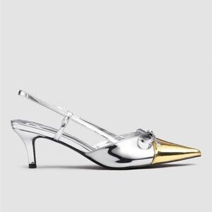 Cider Silver and Gold Pointed Toe Kitten Heels
