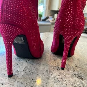 Step out in style with these stunning pink rhinestone boots. Perfect for adding a touch of glamour to any outfit. Never worn. Perfect condition.