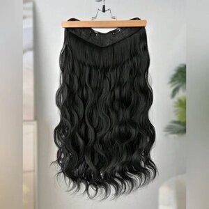 U Shaped Black Wavy One Piece Thick Clip in Hair Extension Piece 22 In long