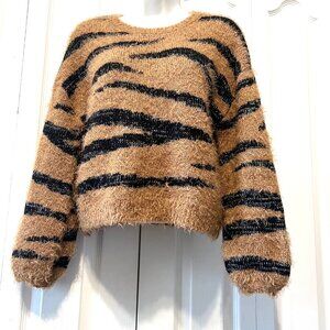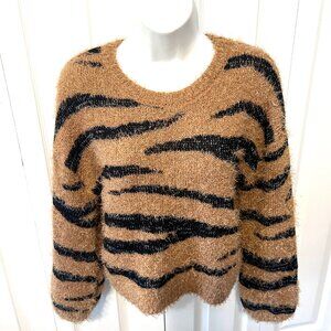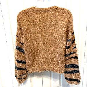 Moral Fiber Women's Cropped Long Sleeve Zebra Print Fuzzy Sweater-Sz. Med-Warm