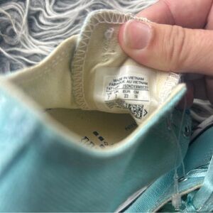 NWT Converse All Stars High Girls' Size 7 Toddler Low Blue Rhinestone Toes. New without tags. Cute ribbon laces. The tag says a different size that is wrong, they are size 7s.