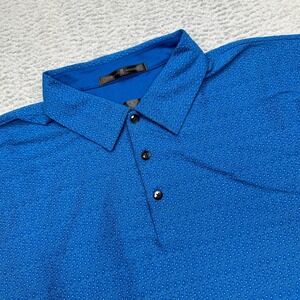 Tiger Woods Golf Polo Shirt Mens Size XL Blue Geometric Short Sleeve Henley
