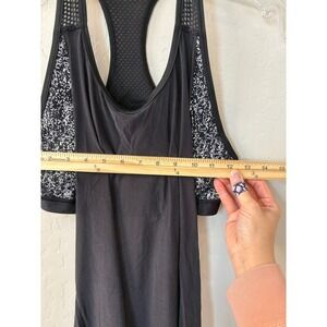 Lululemon Sz 8 Fit Physique Mesh Tank Built In Bra Top Black White Splatter