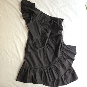 Maeve Anthropologie Black One Shoulder Ruffle Cotton Mini Dress