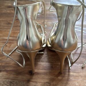 Nine West Gold Strappy Mindi 3 Heels Lace-up Ankle Wrap Sandal Women’s 7.5 NEW