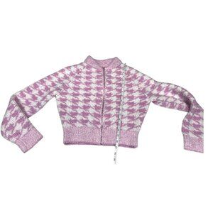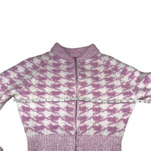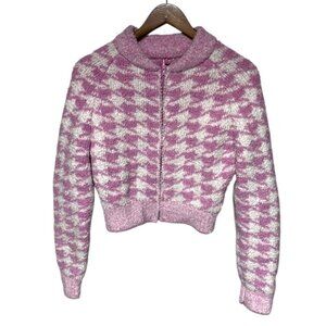 Skims Cozy Knit Zip Up Pink Houndstooth Size S/M