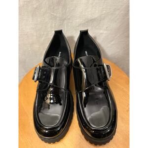 Marc Fisher Hazelton Chunky Loafer Black Patent Vegan Leather All Man Made 9M. Silver tone buckle on strap. New in box, purchased online by me but never worn.