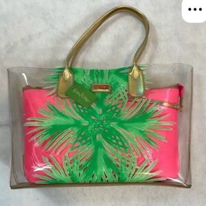 Lilly Pulitzer Clear Tropical Pink and Green Tote