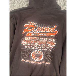 Vintage The Pound Graphic Hoodie Pullover Sweatshirt Brown/Orange 2XL Y2K Retro