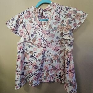 Who What Wear Women's Size S Linen Blend Floral Flutter Sleeve Top