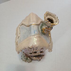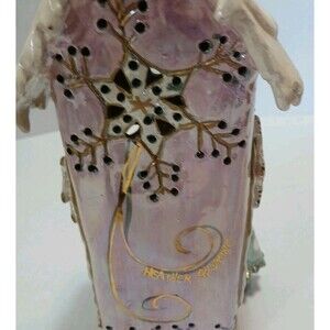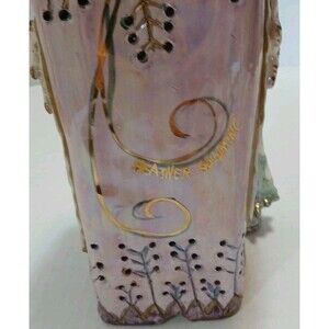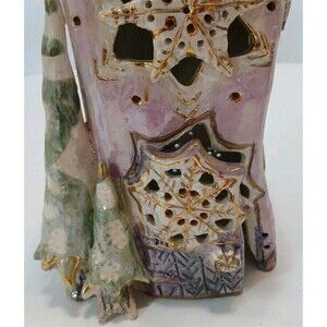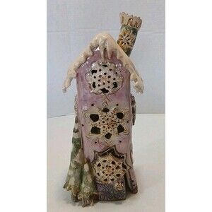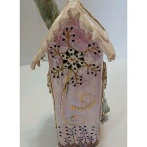 The Heather Goldminc Blue Sky Christmas Tree Tealight Snowflake 12" Pink is a handmade ceramic candle holder, featuring a beautiful pink and multicolor design perfect for the holiday season. This collectible piece was manufactured in Canada in 2002 and is a retired item, making it a rare and unique addition to any holiday decor collection. With its delicate details and festive charm, this tealight snowflake holder is sure to bring a touch of whimsy and warmth to your holiday celebrations. I found no breaks, cracks,. This is a beautiful piece.
