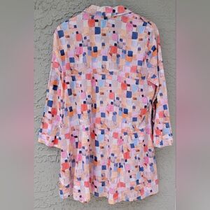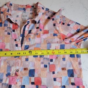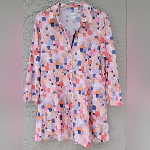 Nic+Zoe 100% cotton Abstract Print Button Front colorful Tunic Top Medium