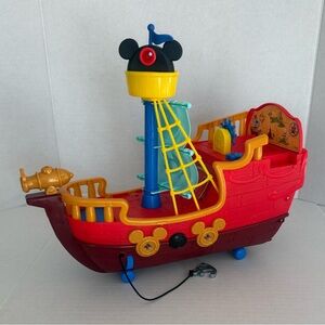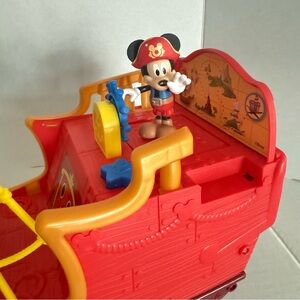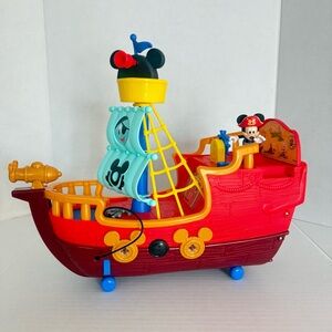 The Disney Junior Mickey Mouse Treasure Adventure Pirate Ship is a fun and interactive toy set that allows children to embark on exciting pirate adventures with Mickey Mouse. This set includes a pirate ship and four figurines.