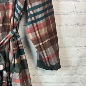 Chic plaid dress with button-up front. Features a stylish belted waist. Has Pockets. Size 3X (22/24)