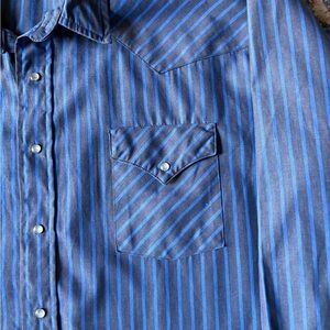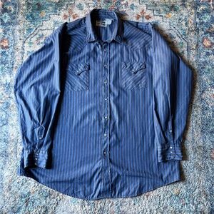 Vintage Western Craft Blue Pinstriped Pearl Snap Shirt Size XXL