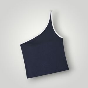Gilly Hicks One-Shoulder Asymmetrical Tank with Built-In Bra – Navy & White – Size M