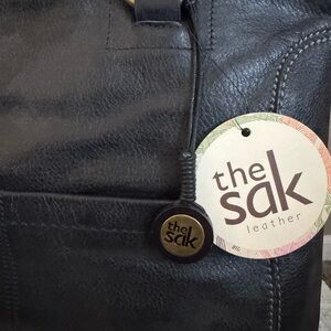 Chic and versatile leather tote. Features sturdy handles and front pocket. Ideal for daily essentials. NWT. Callout- couple spots of wear (see pics)