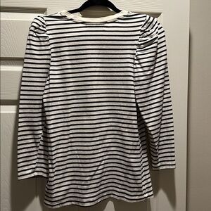 Pomander Place Navy Striped Vesty Puff Shoulder Long Sleeve Knit Top Womens sz M