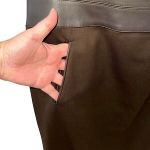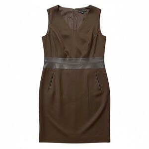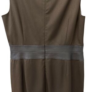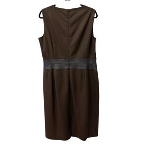 Lafayette 148 New York Brown Wool & Leather Sleeveless Fit & Flare Midi Dress